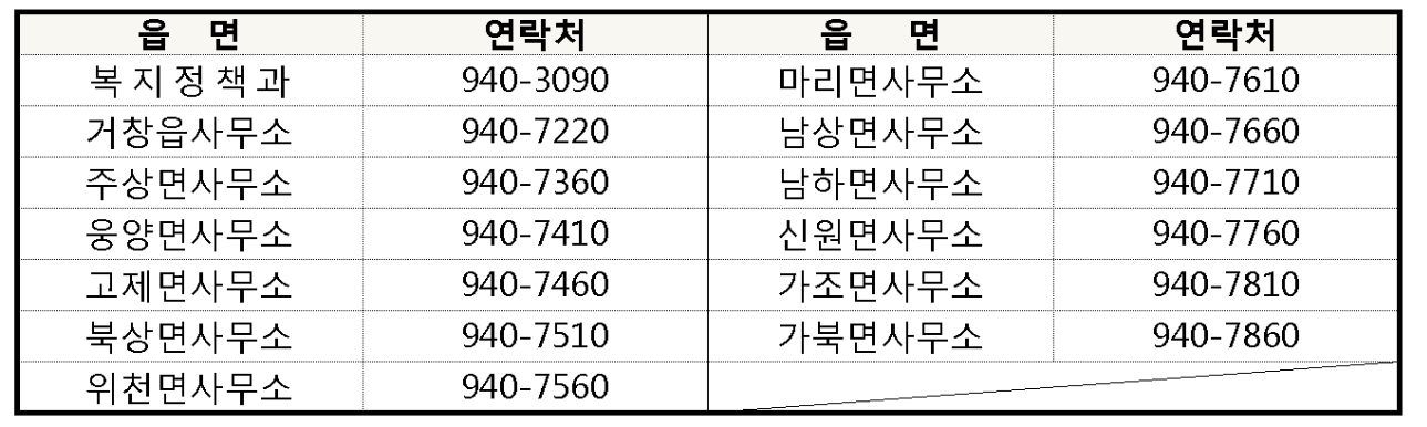 거창군 재난지원금 대리 신청에 관한 내용이 없기 때문에 이에 대한 사항은 해당 읍·면 사무소에 연락을 하여 한번 확인을 해보는 것을 추천드립니다. 위의 표를 보고 내가 사는 지역에서 가장 가까운 면사무소를 찾아주세요.