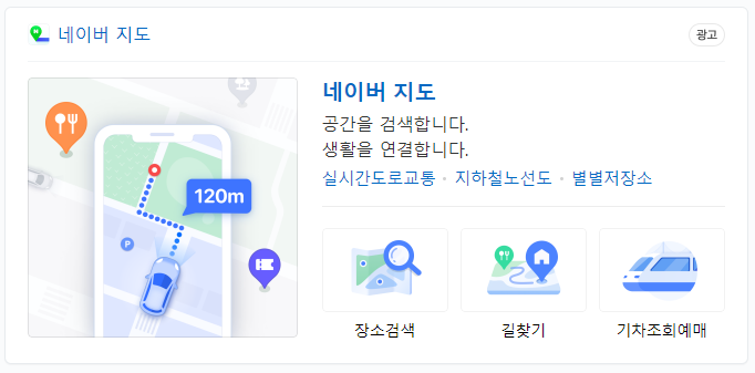 네이버는 지도 서비스를 제공하며, 이를 통해 길찾기, 교통정보, 실시간 교통 상황 등의 정보를 제공합니다. 또한, 지도 서비스를 활용하여 새로운 장소를 탐색하고 여행 계획을 세울 수도 있습니다.