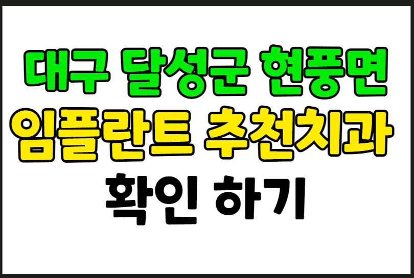 대구 달성군 현풍면 임플란트 가격 관련 포스팅입니다. 달성군 지역에도 임플란트 시술을 하는 치과들이 아주 많습니다. 하지만 가까운 곳과 자신에게 맞는 거리, 뛰어난 치과의사가 어디에 있는지는 잘 모릅니다. 아래의 정보를 확인 하여 자신에게 어떤 치과가 맞는지 한번 확인 해봅시다.