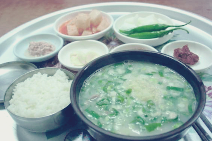 돼지머리고기를 끓여서 만든 국물과 쌀을 함께 끓여 만든 국밥입니다. 돼지머리고기의 기름기와 육질이 풍부하여 국물의 풍미와 맛을 더해줍니다.