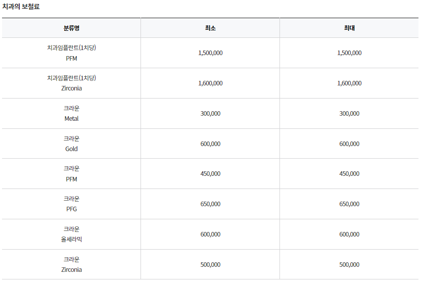 뉴서울 치과의원은 지르코니아 임플란트만 공개되어 있습니다. 가격은 150만원이며 임플란트는 골드,PFM,지르코니아 3가지 입니다. 35만원~45만원대 입니다.