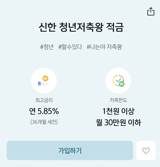신한은행 청년저축왕 적금 추천인 금리 혜택 보기