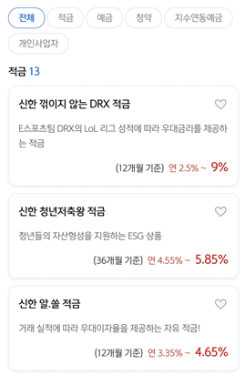 신한은행의 적금통장은 다른 은행에 비해 상대적으로 높은 이자율을(최고 5.85%) 제공합니다.