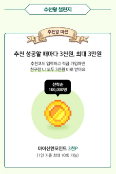 또한 상품을 가입할 경우 추천인 코드르르 넣으면 3천포인트를 지급 합니다.