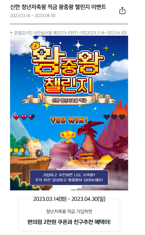신한은행 청년저축왕 왕중왕 챌린지 이벤트