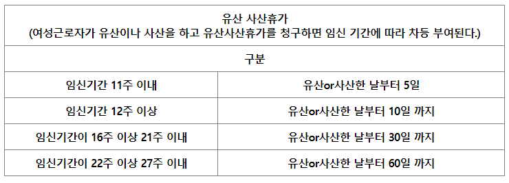 출산 전후 휴가(유산·사산 휴가) 신청시기